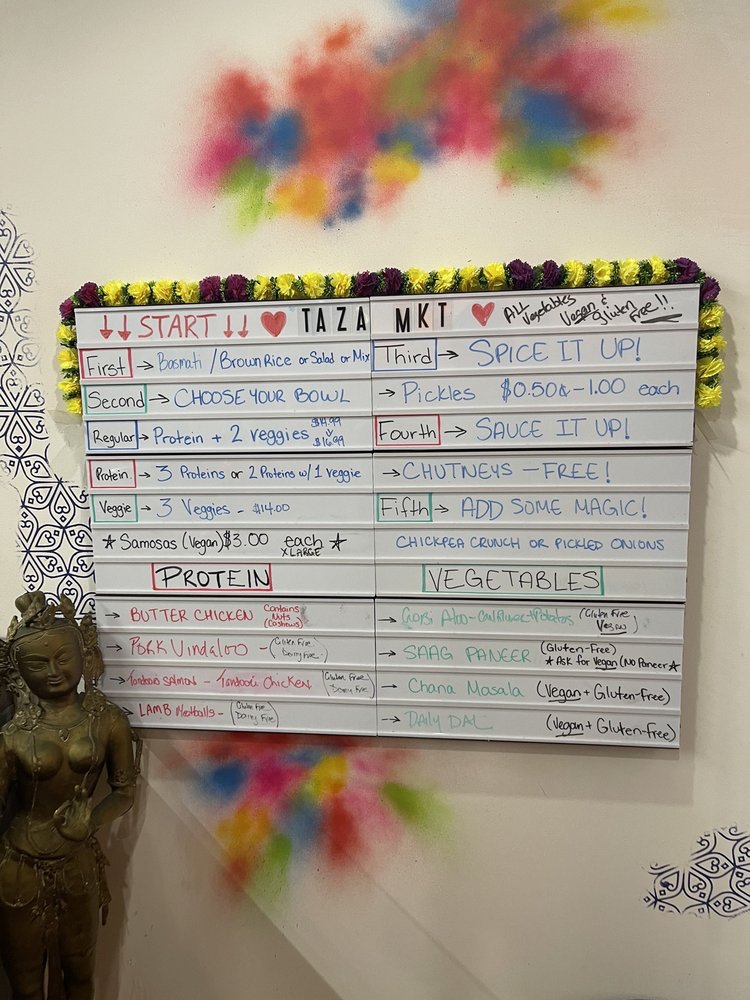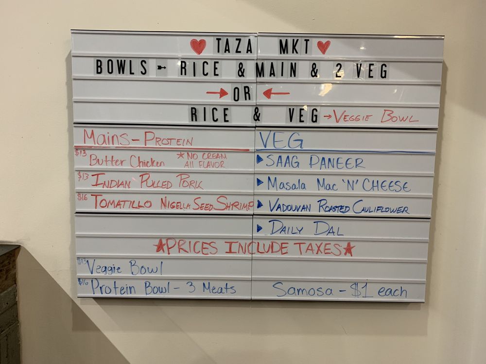 Whether you're looking for a quick lunch or a cozy dinner, Taza Mkt is devoted to providing not just food, but a celebration of Indian culinary artistry. Come for the food, stay for the warmth!